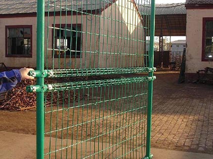 雙圈護(hù)欄網(wǎng)是用冷拔低碳鋼絲焊接成網(wǎng)筒狀卷邊與網(wǎng)面一體,采用鍍鋅進(jìn)行防腐處理,具有很強(qiáng)的耐腐蝕性,然后進(jìn)行噴、浸塑,各種顏色的噴、浸塑;最后連接附件與鋼管支柱固定。