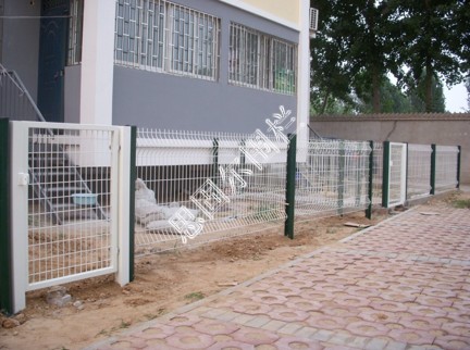 鐵絲網(wǎng)小區(qū)圍欄是由排焊機對鐵絲焊接成型,在經(jīng)過折彎、表面處理,立柱制作,安裝后形成。