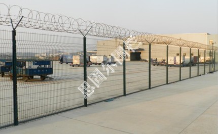 注:如果在飛機(jī)場圍欄頂部加裝刀片刺絲、刀片刺繩后又很好的增強(qiáng)了安全防護(hù)性能。采用電鍍、熱鍍、噴塑、浸塑等防腐形式,具有很好的抗老化、抗曬、耐候等特點。其產(chǎn)品造型美觀、花色多樣,既起到圍欄作用,又起到美化作用。由于具有安全性高、防攀爬能力好,網(wǎng)片連接方式采用特制SBS緊扣件,有效防止人為的破壞性拆卸,橫向四道折彎加強(qiáng)筋,使網(wǎng)面強(qiáng)度顯著增加。