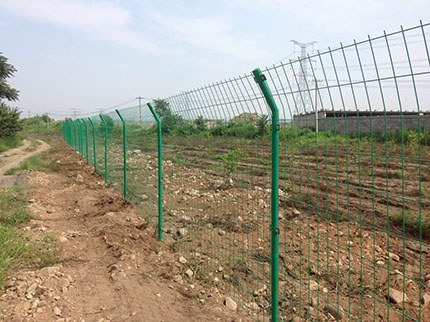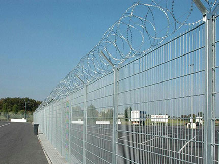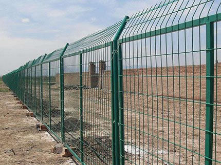 軍事基地防護(hù)網(wǎng)外觀尺寸為1700×3000mm(立柱中心距),邊框采用30×50×2.0mmd的矩管制成,網(wǎng)片由直徑為4mm的鋼絲焊接,網(wǎng)孔75×150mm,立柱用40×40×2.5mm的方管制成。立柱、網(wǎng)片鏈接板采用90°折角,厚度4mm鋼板制成,金屬網(wǎng)應(yīng)進(jìn)行鍍鋅后防腐浸塑處理,防護(hù)柵欄安裝做到“嚴(yán)、直、齊、美”,線路封閉嚴(yán)實(shí),不留間隙;沿線路方向順直,不忽遠(yuǎn)忽近;防護(hù)柵欄頂端和下端縱向過渡平滑整齊,不忽高忽低;要求整體效果美觀,避免給人凌亂感覺。安裝前應(yīng)平整場地,柵欄底部距離地面高度按10cm設(shè)計(jì),不滿足時(shí),應(yīng)進(jìn)行回填處理。